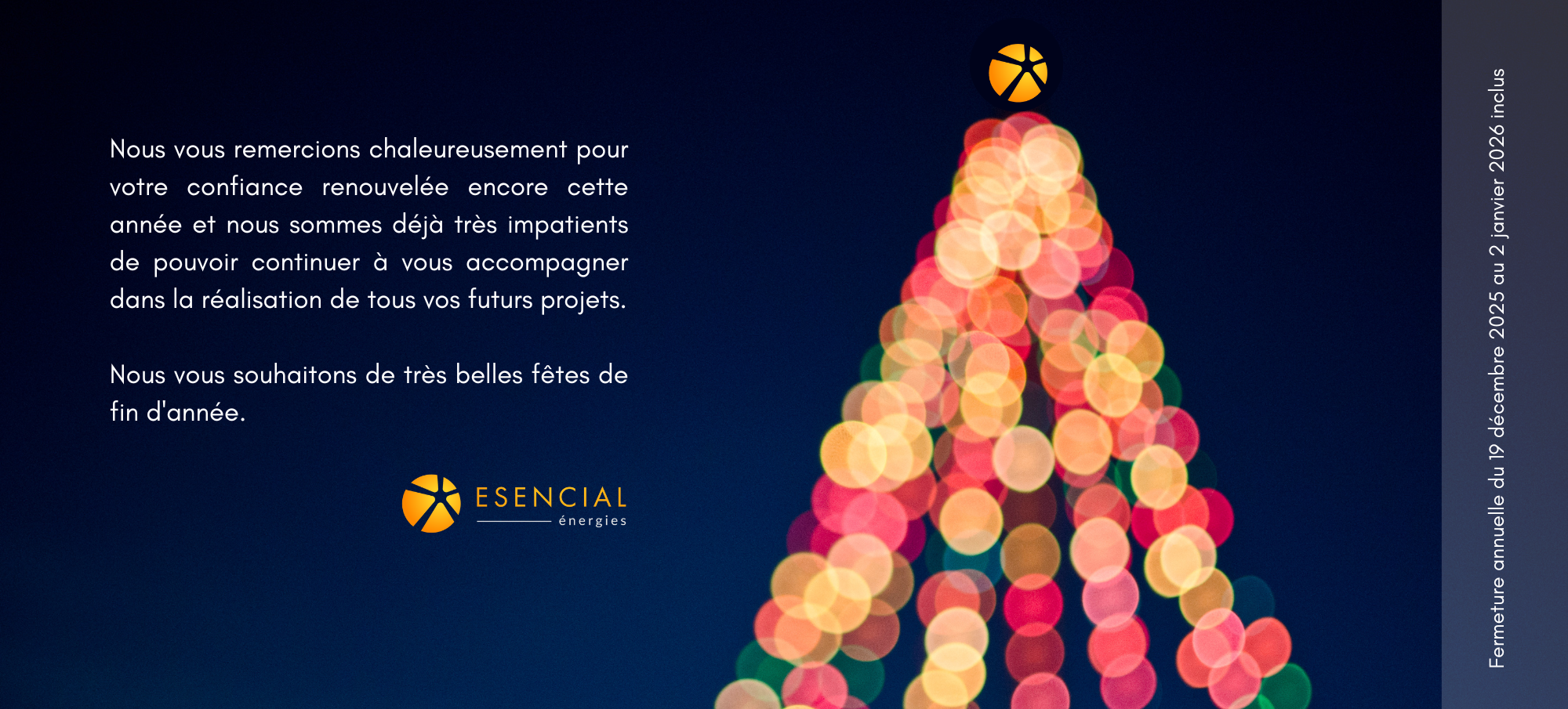 A partir du 5 janvier 2026, toute l’équipe d’ESENCIAL énergies sera à votre disposition comme d’habitude.